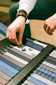 ヒアリングにて出来上がったイメージを元にスーツの生地・裏地・ボタン・デザインを決めていただきます。全てスタッフと会話をしながら決定するため、1からスーツをデザインすることが可能です。細部に渡りお客様らしさを演出していただけます。